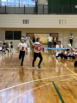 保護者対保育者の大縄跳びは、保護者の皆さんのジャンプ力にいつも驚かされています。
